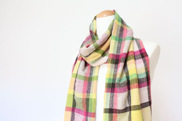 複雑な配色のブロックチェック。こちらは色違いが何色かあります。