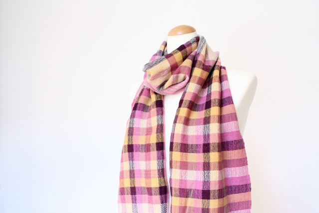 複雑な配色のブロックチェック。こちらは色違いが何色かあります。