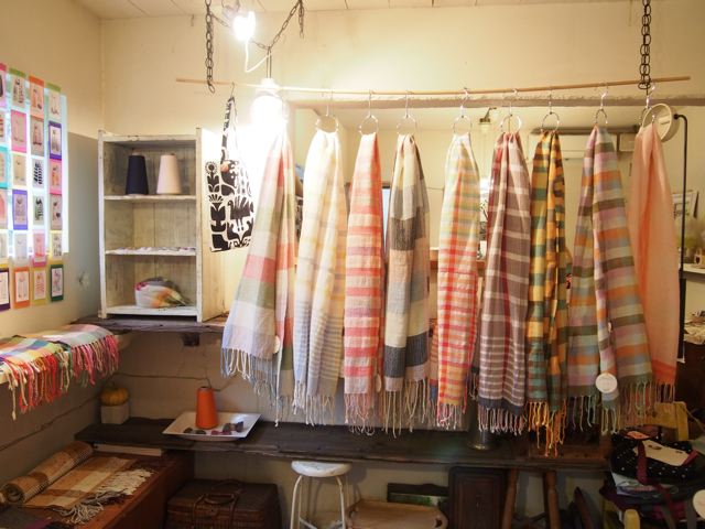 ストールを見たり巻いたり、楽しみにいらしてくださいませ!