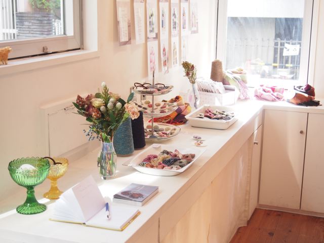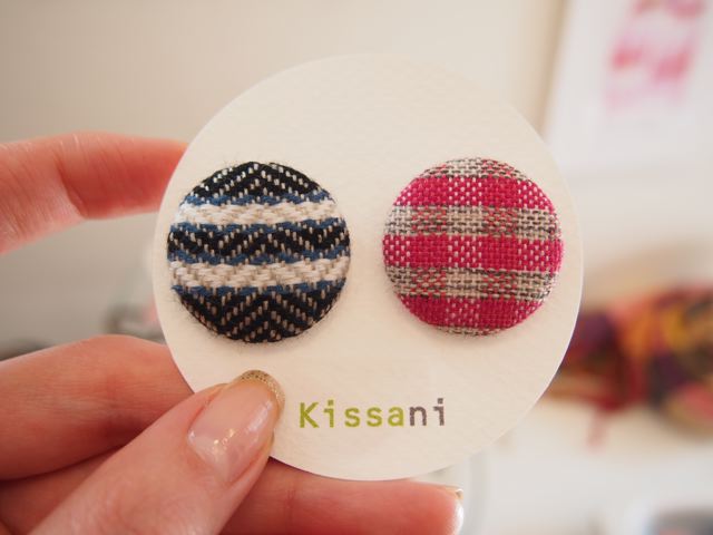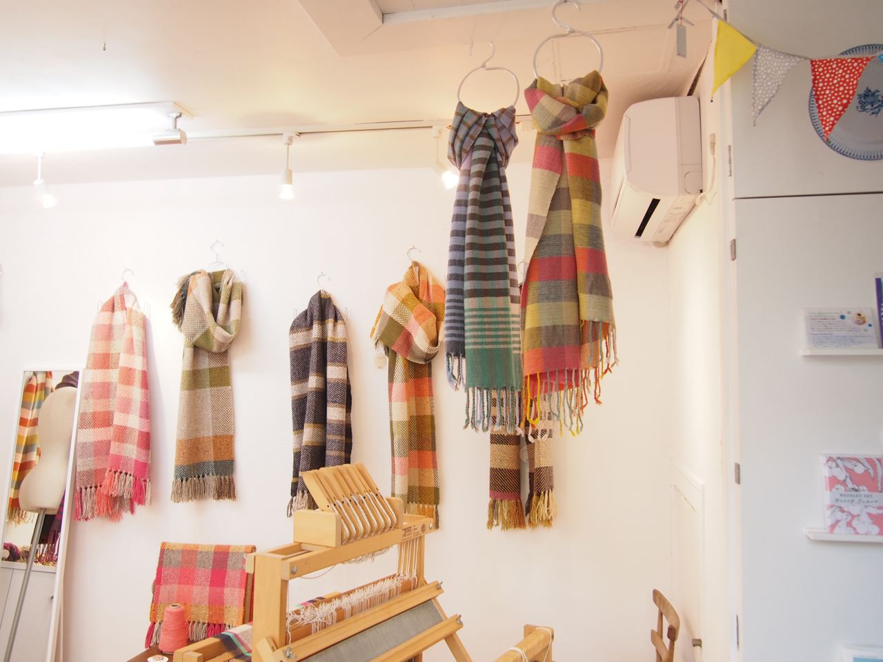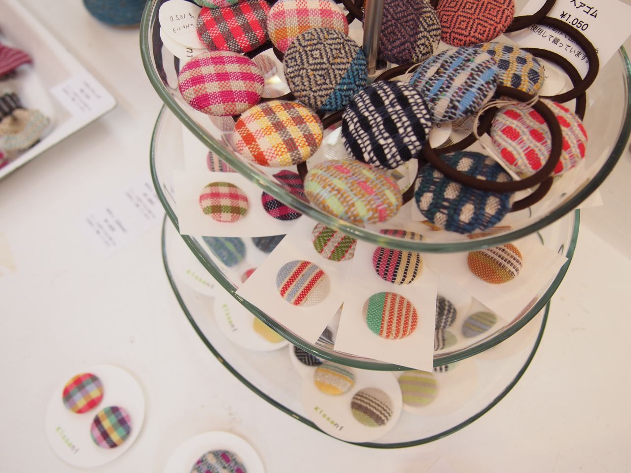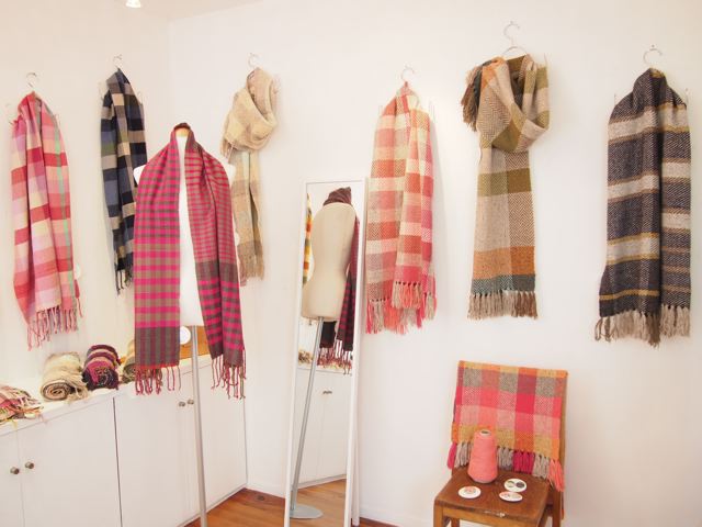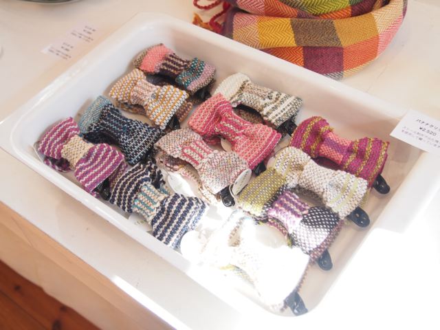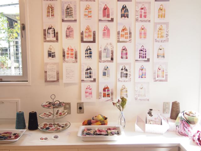 秋冬物の手織りストールと、くるみボタンなどの小物の展示会です。