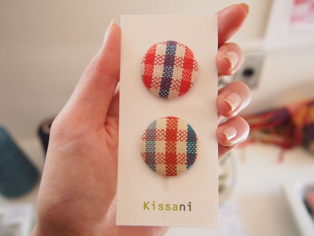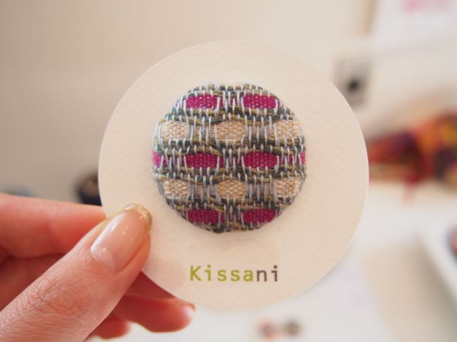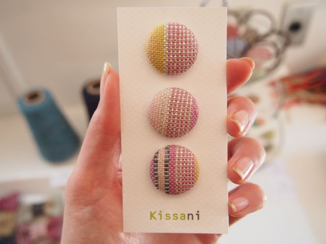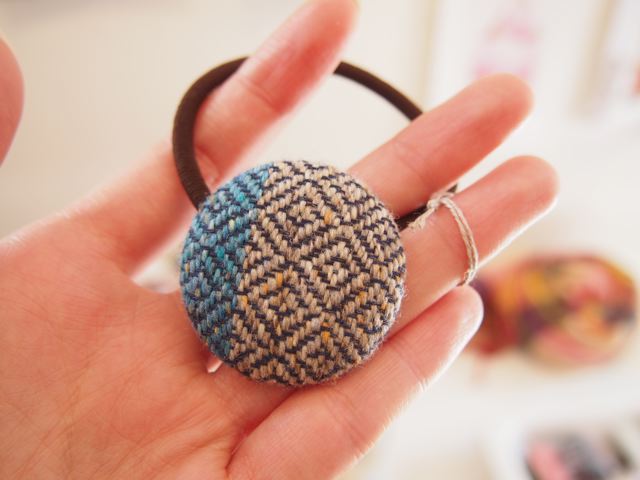 ストールを織って残った糸を使用したくるみボタンや